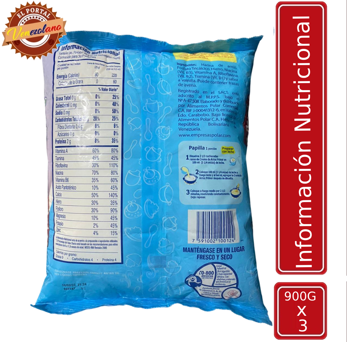 Crema De Arroz Primor Bolsa 900 Gr Venezuela